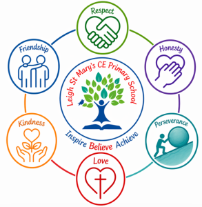 Through this approach, RE at Leigh St Mary’s supports children in developing a strong understanding of Christianity alongside other religions and worldviews. It helps them to grow in respect and appreciation for others, to engage with challenging questions about life and meaning, and to develop their own sense of identity and values. Ultimately, our RE curriculum prepares pupils to live well together in a diverse and changing world.
